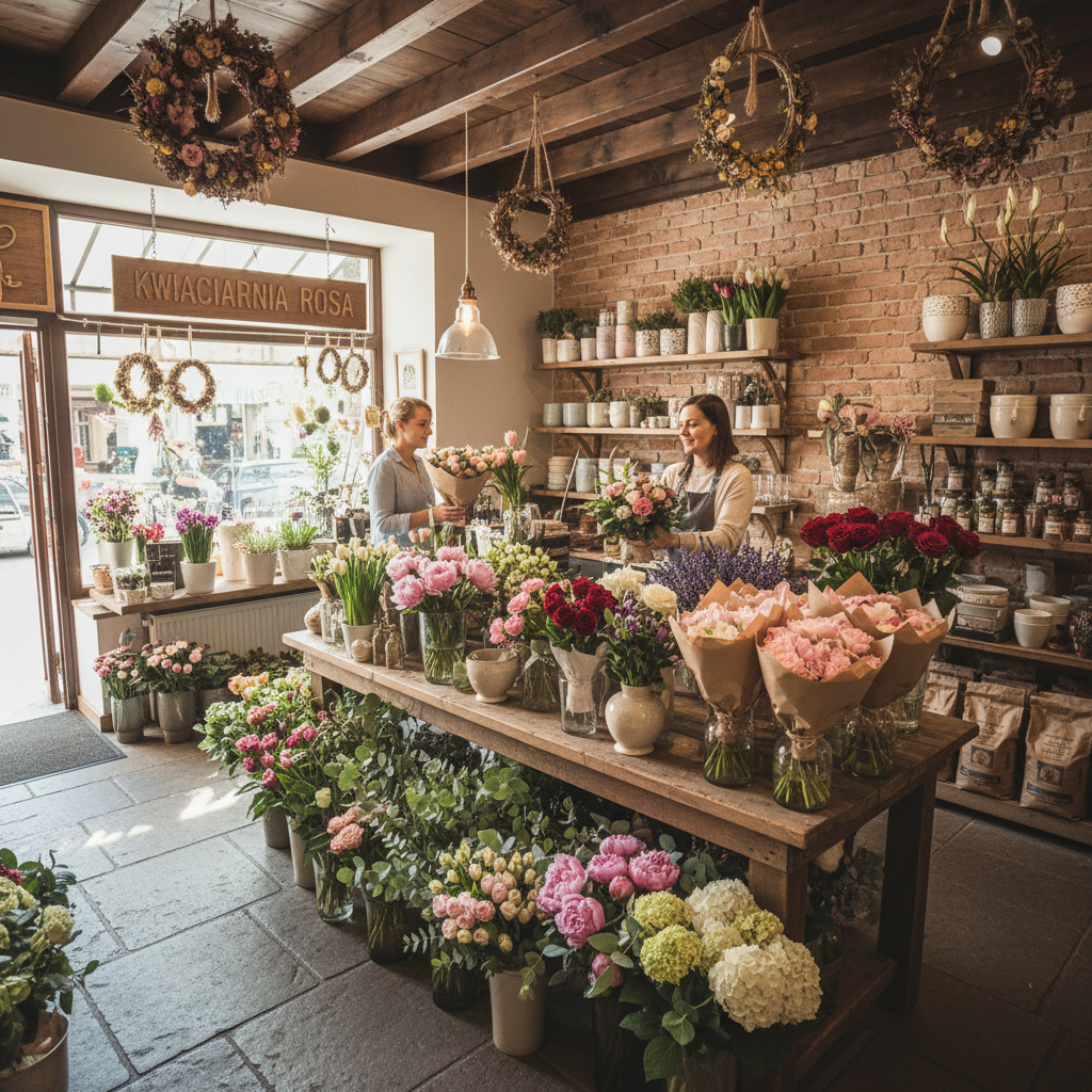 Pracownia florystyczna tworząca unikatowe bukiety i dekoracje z żywych kwiatów.