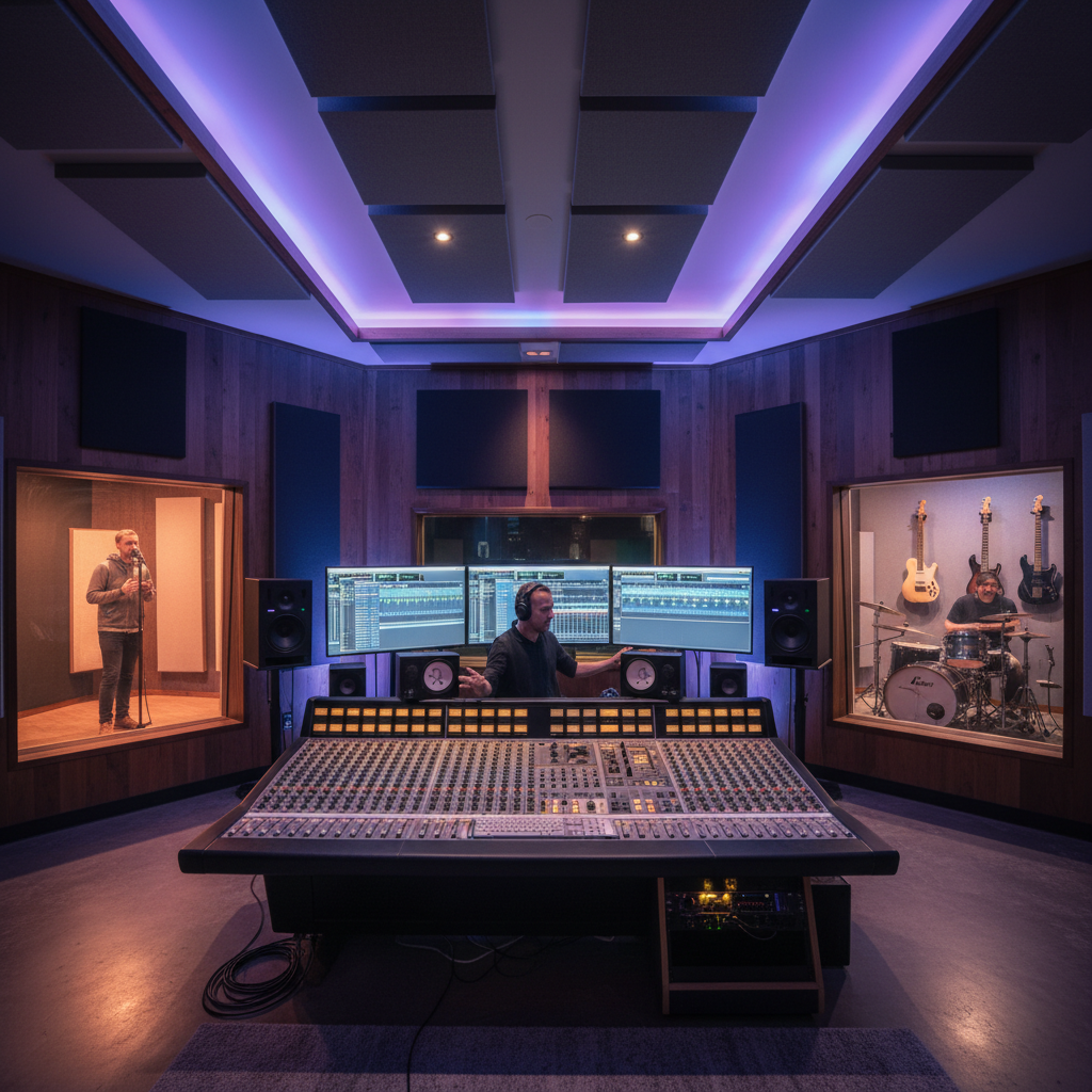 Profesjonalne nagrania wokalu i instrumentów w akustycznym studio.